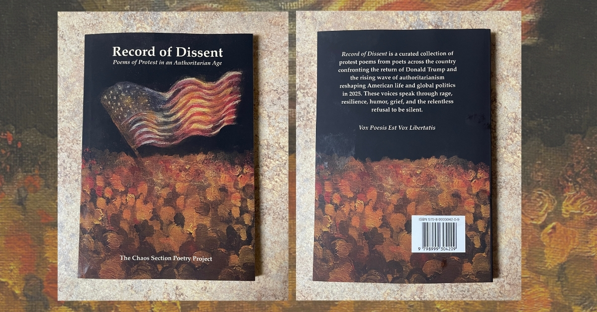 After months of reading, curating, editing, and wrangling files into formats they did not want to be in, I’m proud to say that Record of Dissent: Poems of Protest in an Authoritarian Age is now available in print. You can order a copy online through IngramSpark, Bookshop.org, Barnes & Noble, BookPeople, Alibris, or ask your local indie bookseller to … Continue reading Get Your Copy: “Record of Dissent” Is Now Available in Paperback